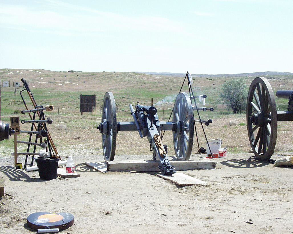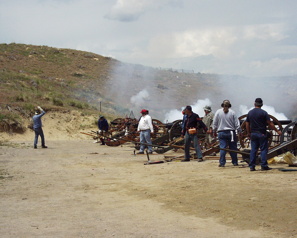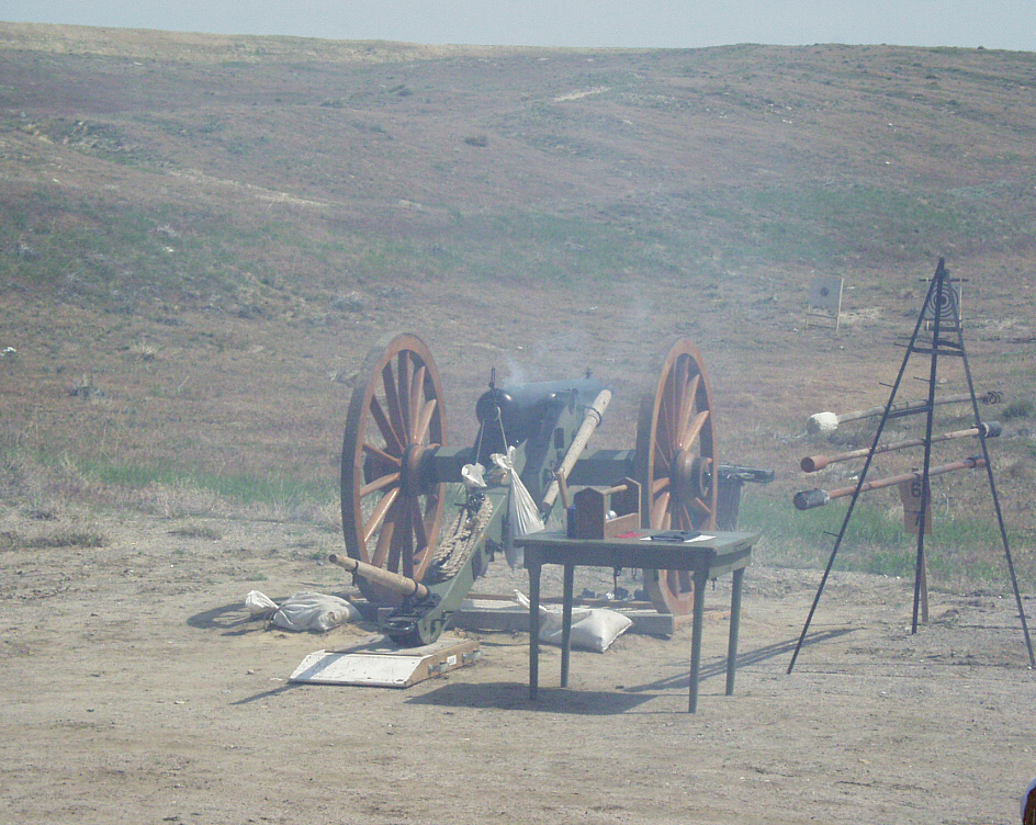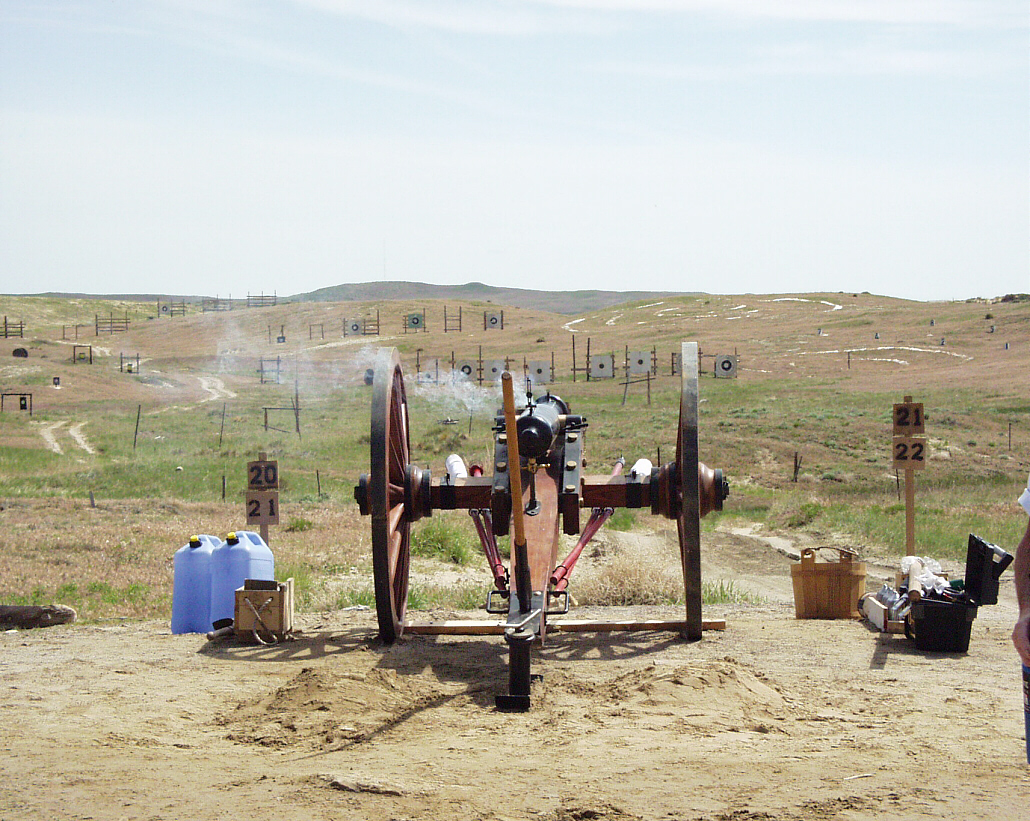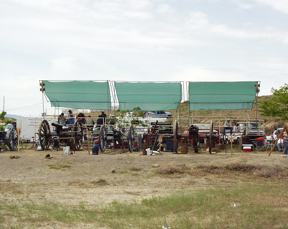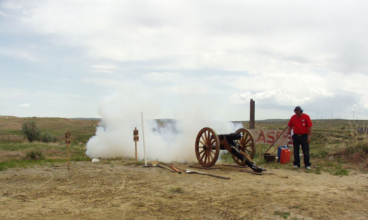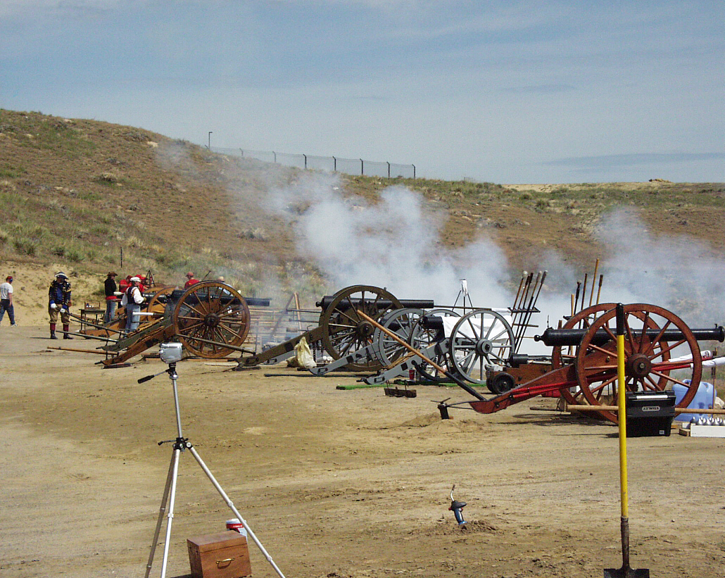 2009 Casper Cannon Shoot The Range Aerial View, Spectator Area, 100yd. Smoothbore Targets, 400 & 600yd. Rifled Targets Opening Ceremony Aerial Burst with Red Smoke and Boy Scout Flag Presentation Battery Fire as played from "Battle Hymn of the Republic" Firing Line Guns of the Shoot Rifled Cannons 40mm Rifled Guns