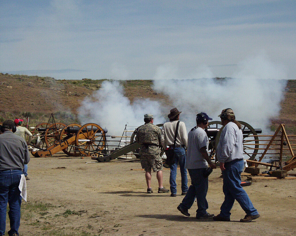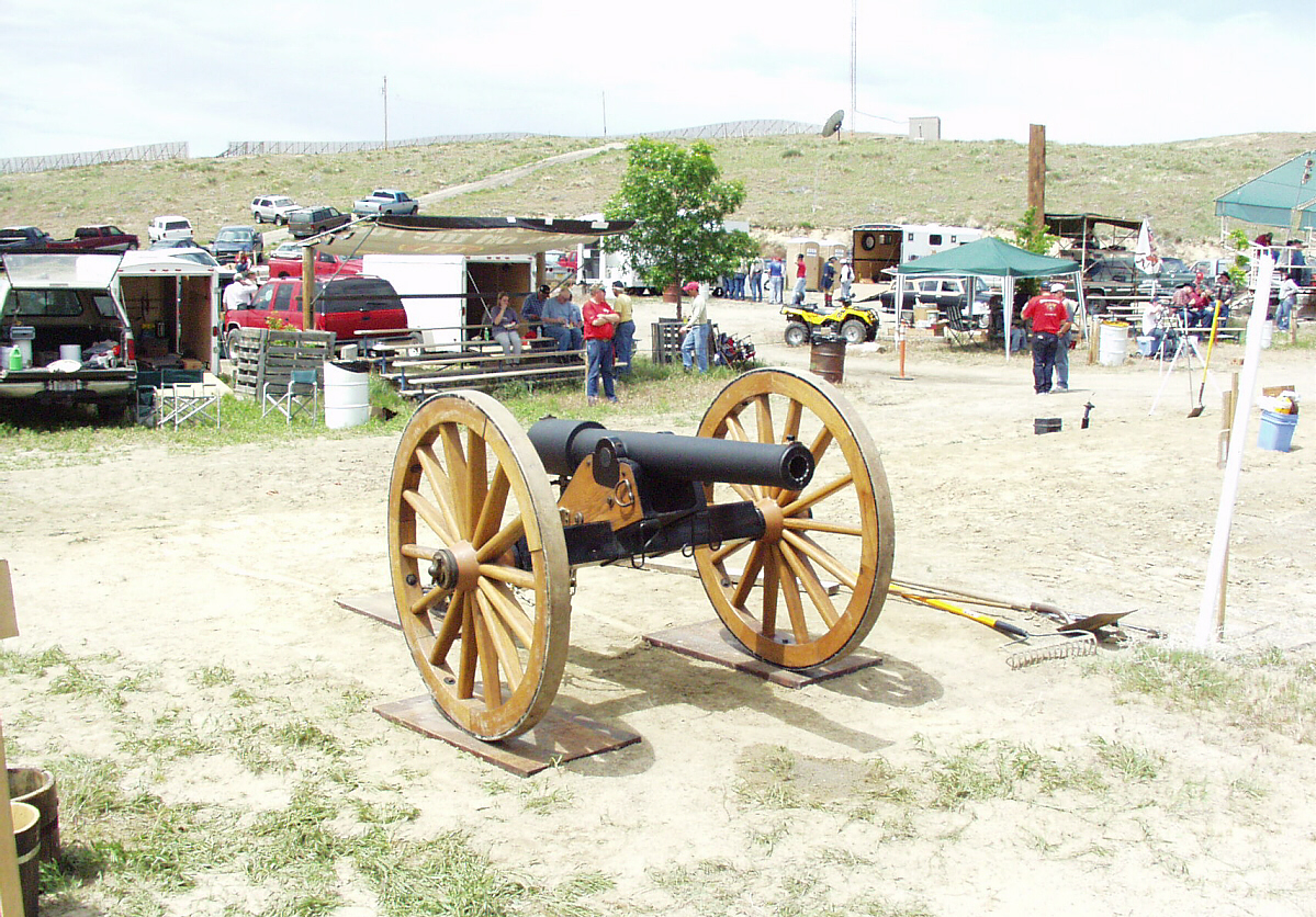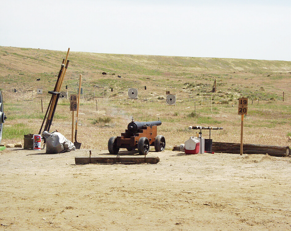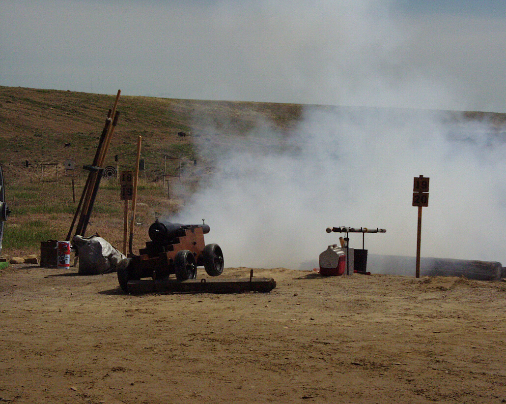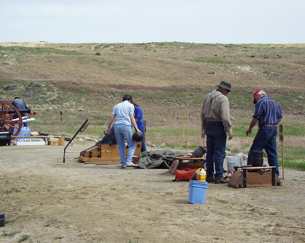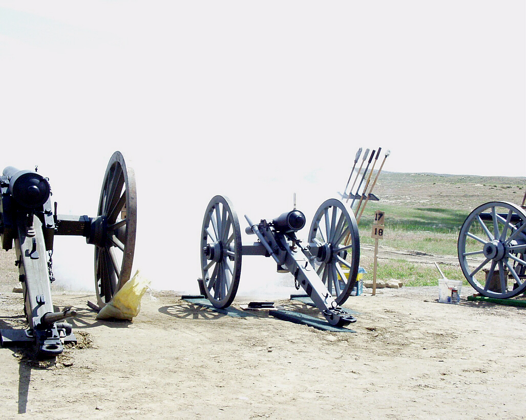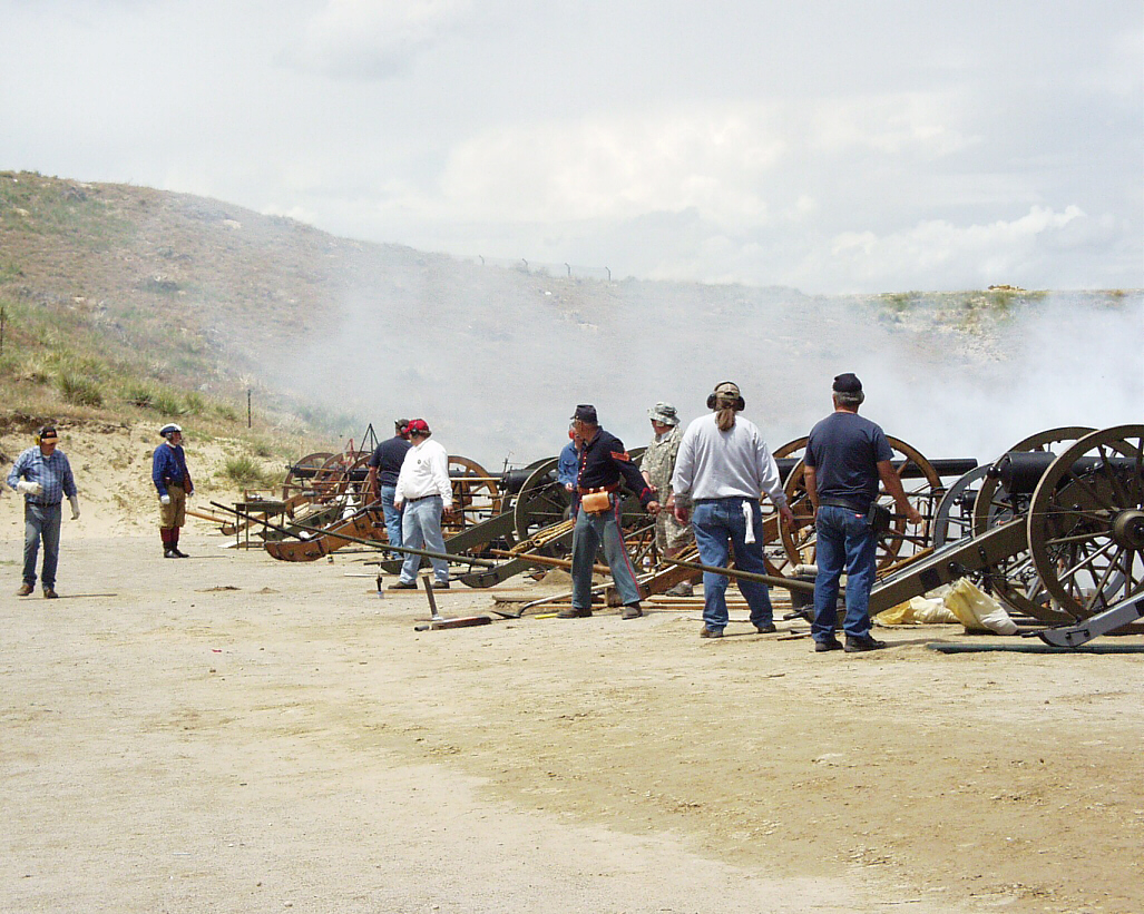 2009 Casper Cannon Shoot The Range Aerial View, Spectator Area, 100yd. Smoothbore Targets, 400 & 600yd. Rifled Targets Opening Ceremony Aerial Burst with Red Smoke and Boy Scout Flag Presentation Battery Fire as played from "Battle Hymn of the Republic" Firing Line Guns of the Shoot Rifled Cannons 40mm Rifled Guns