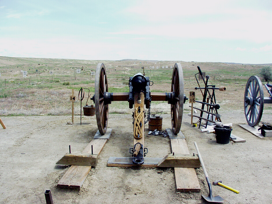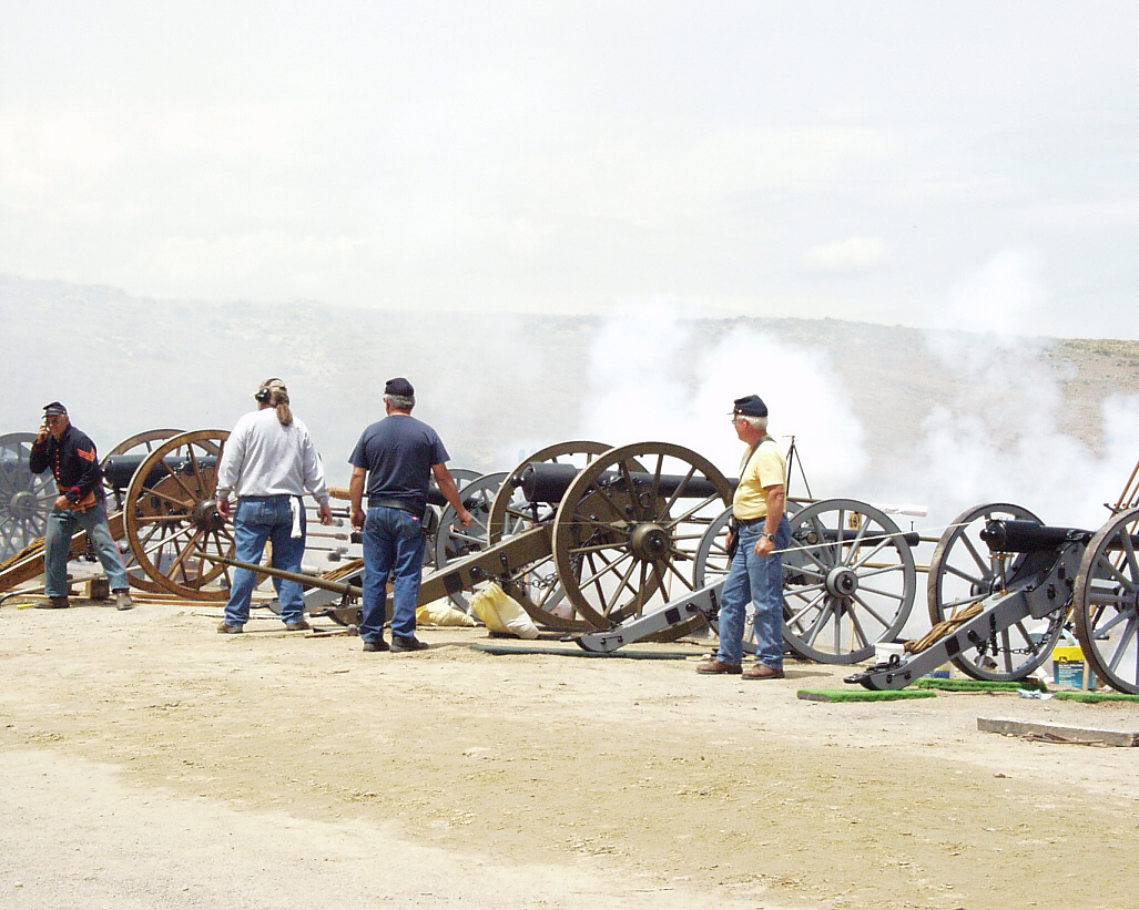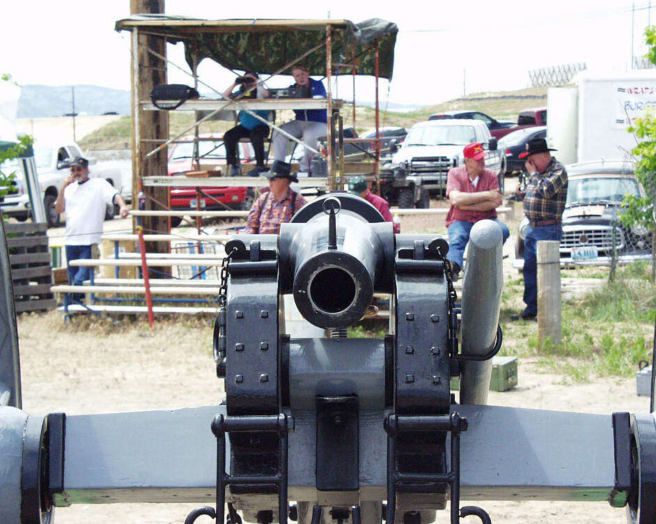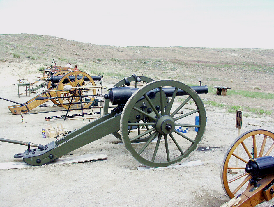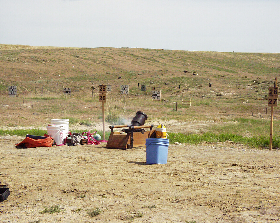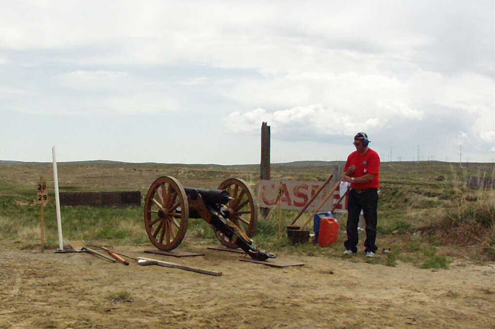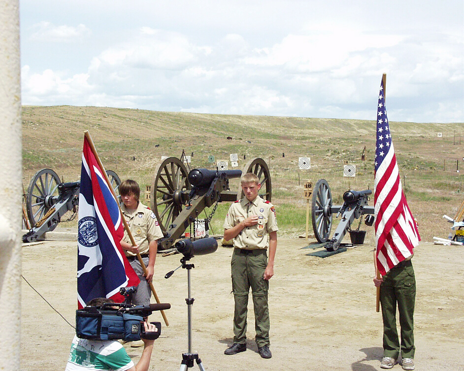2009 Casper Cannon Shoot The Range Aerial View, Spectator Area, 100yd. Smoothbore Targets, 400 & 600yd. Rifled Targets Opening Ceremony Aerial Burst with Red Smoke and Boy Scout Flag Presentation Battery Fire as played from "Battle Hymn of the Republic" Firing Line Guns of the Shoot Rifled Cannons 40mm Rifled Guns