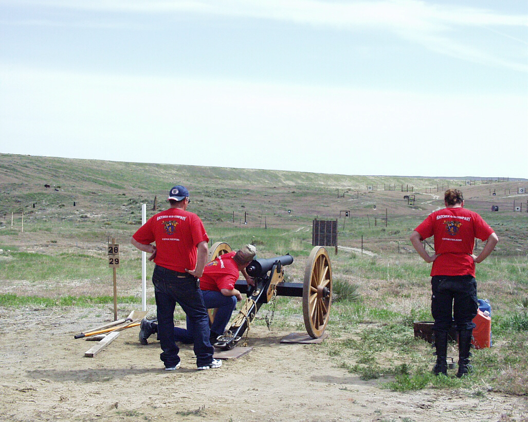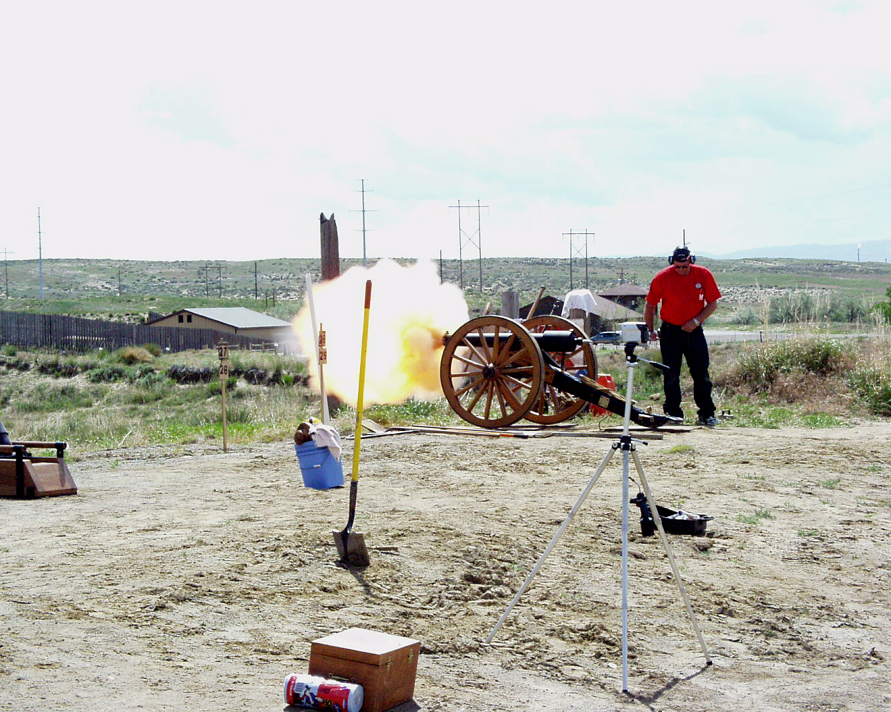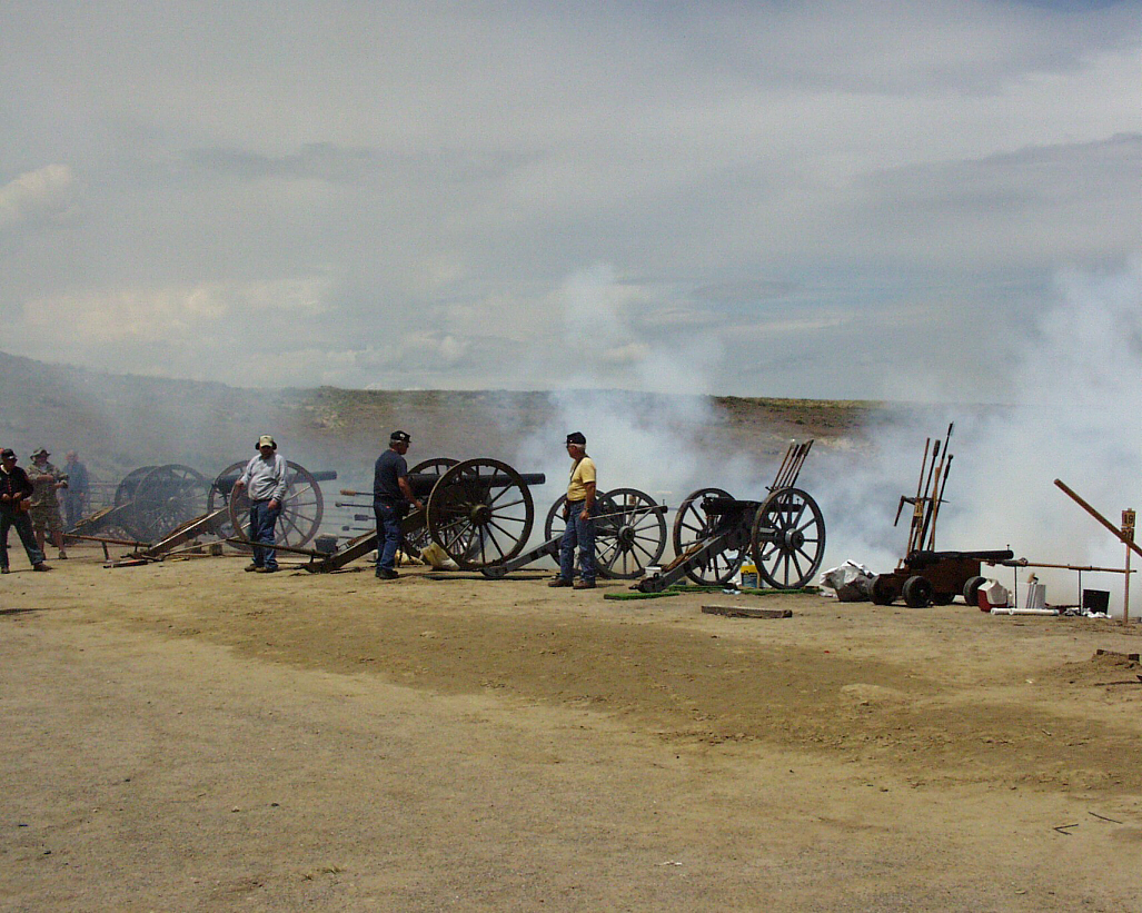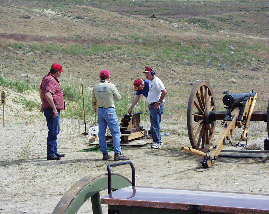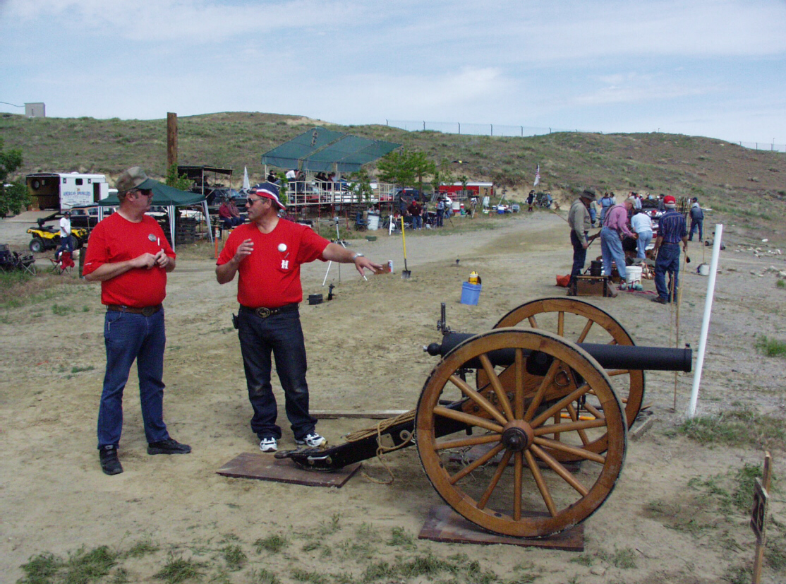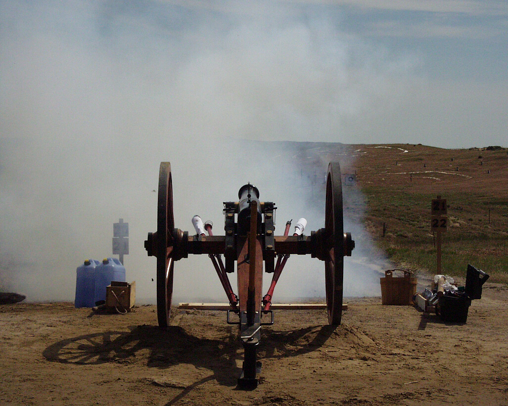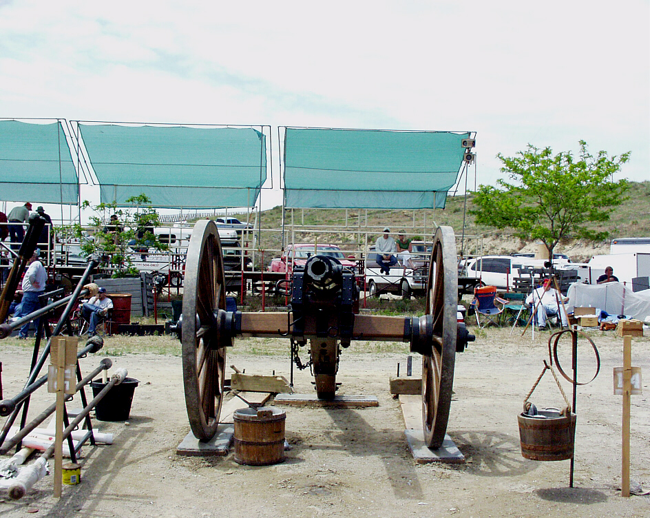 2009 Casper Cannon Shoot The Range Aerial View, Spectator Area, 100yd. Smoothbore Targets, 400 & 600yd. Rifled Targets Opening Ceremony Aerial Burst with Red Smoke and Boy Scout Flag Presentation Battery Fire as played from "Battle Hymn of the Republic" Firing Line Guns of the Shoot Rifled Cannons 40mm Rifled Guns