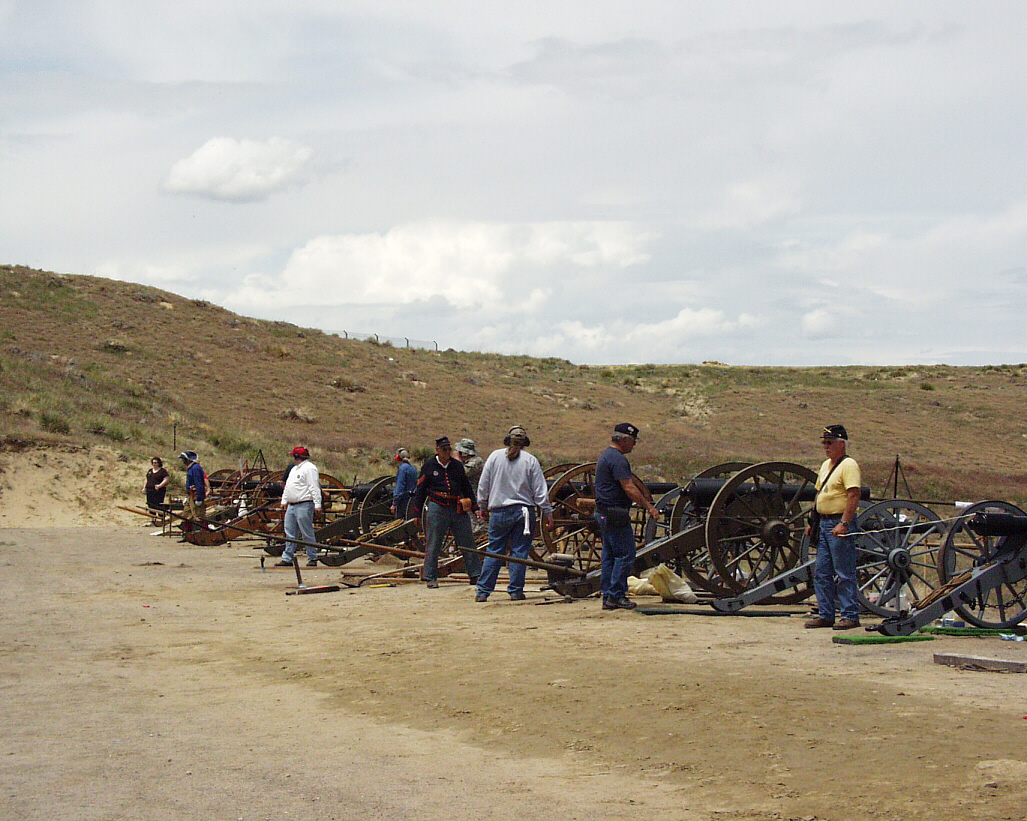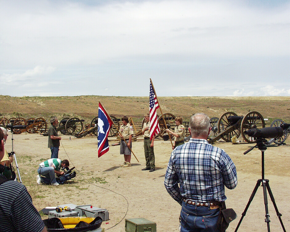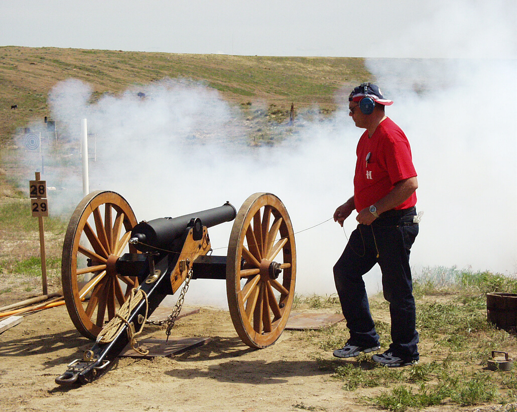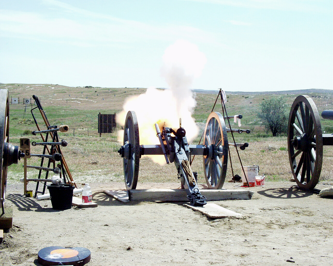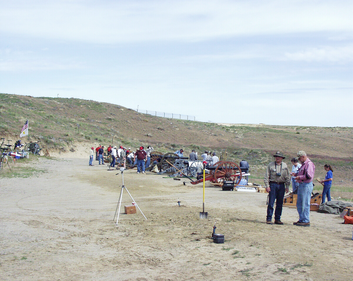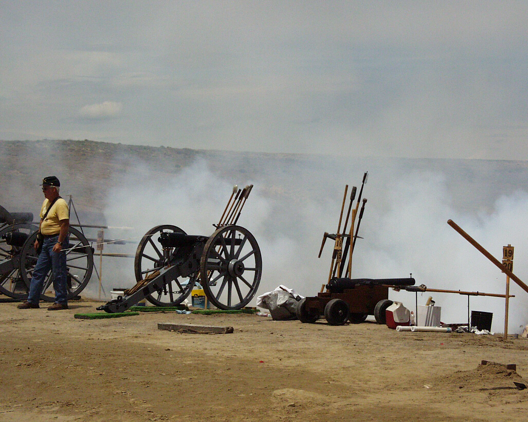 2009 Casper Cannon Shoot The Range Aerial View, Spectator Area, 100yd. Smoothbore Targets, 400 & 600yd. Rifled Targets Opening Ceremony Aerial Burst with Red Smoke and Boy Scout Flag Presentation Battery Fire as played from "Battle Hymn of the Republic" Firing Line Guns of the Shoot Rifled Cannons 40mm Rifled Guns