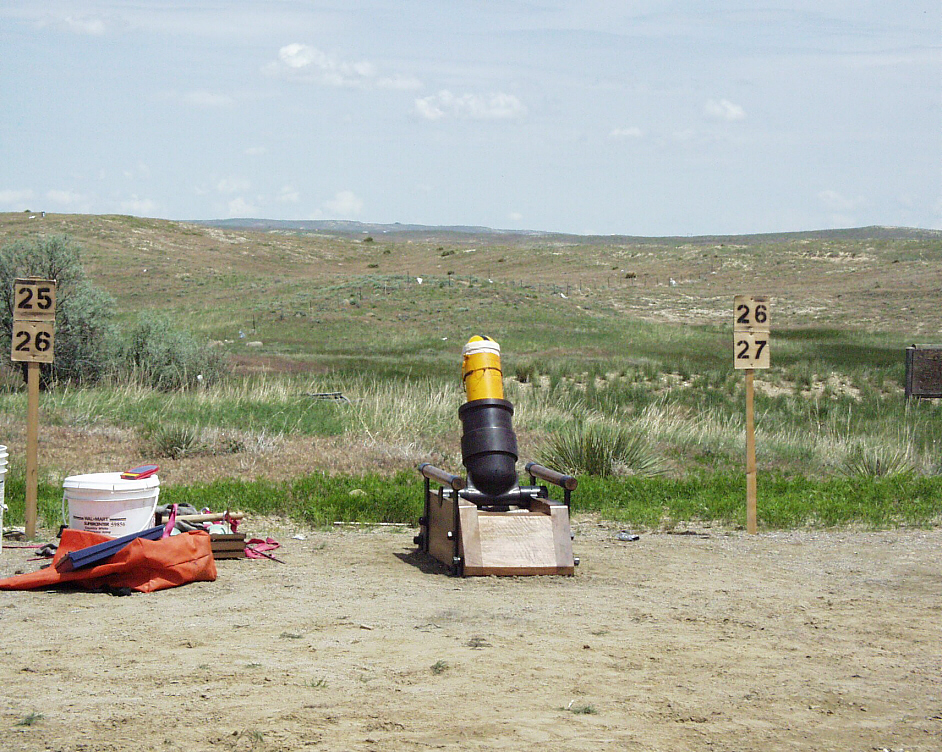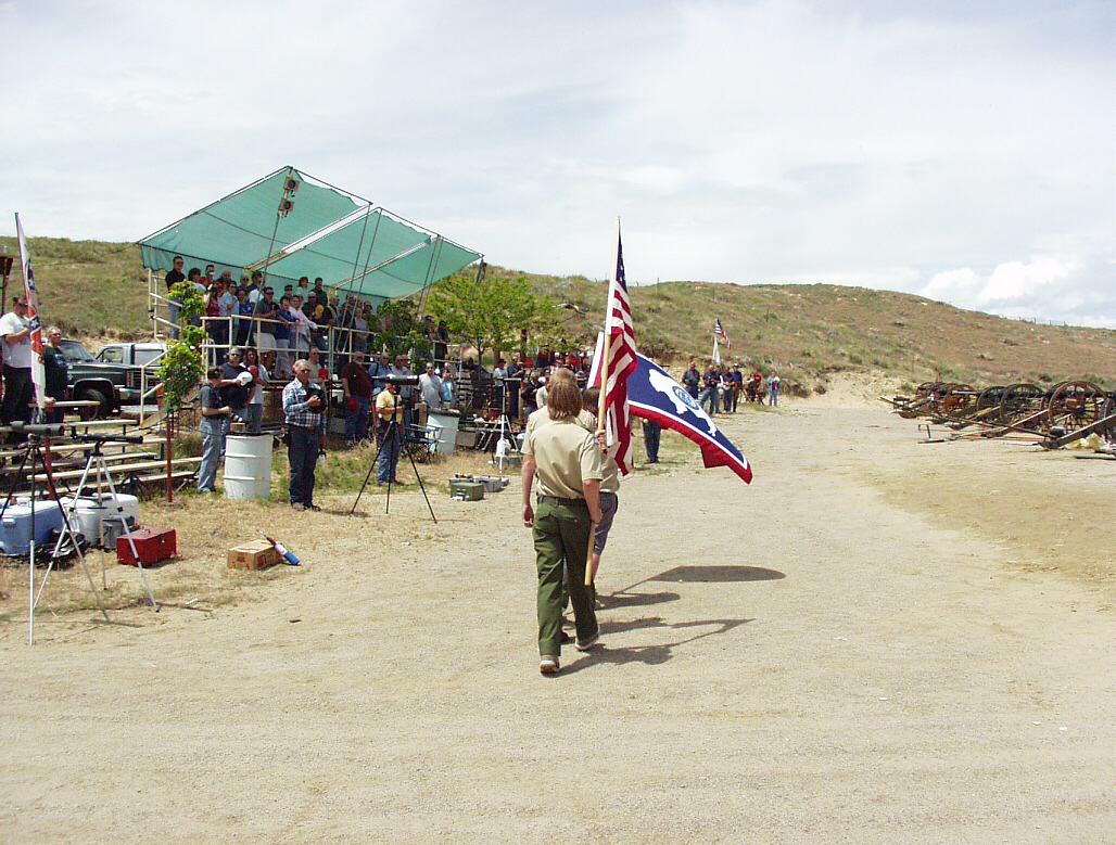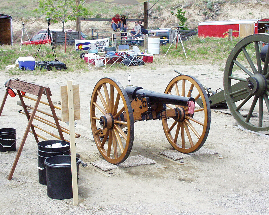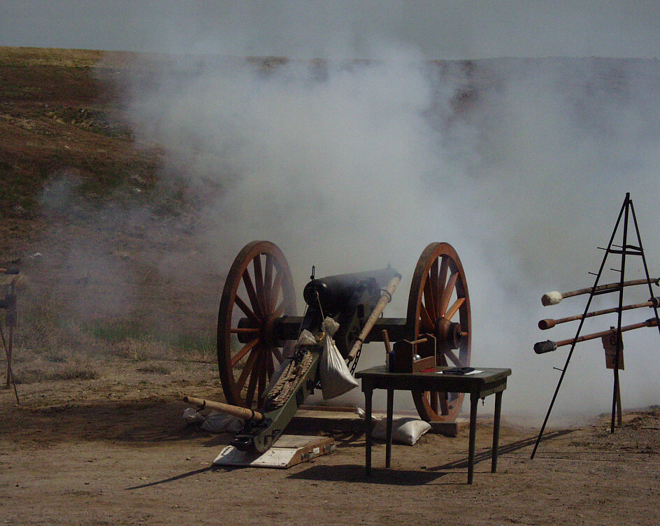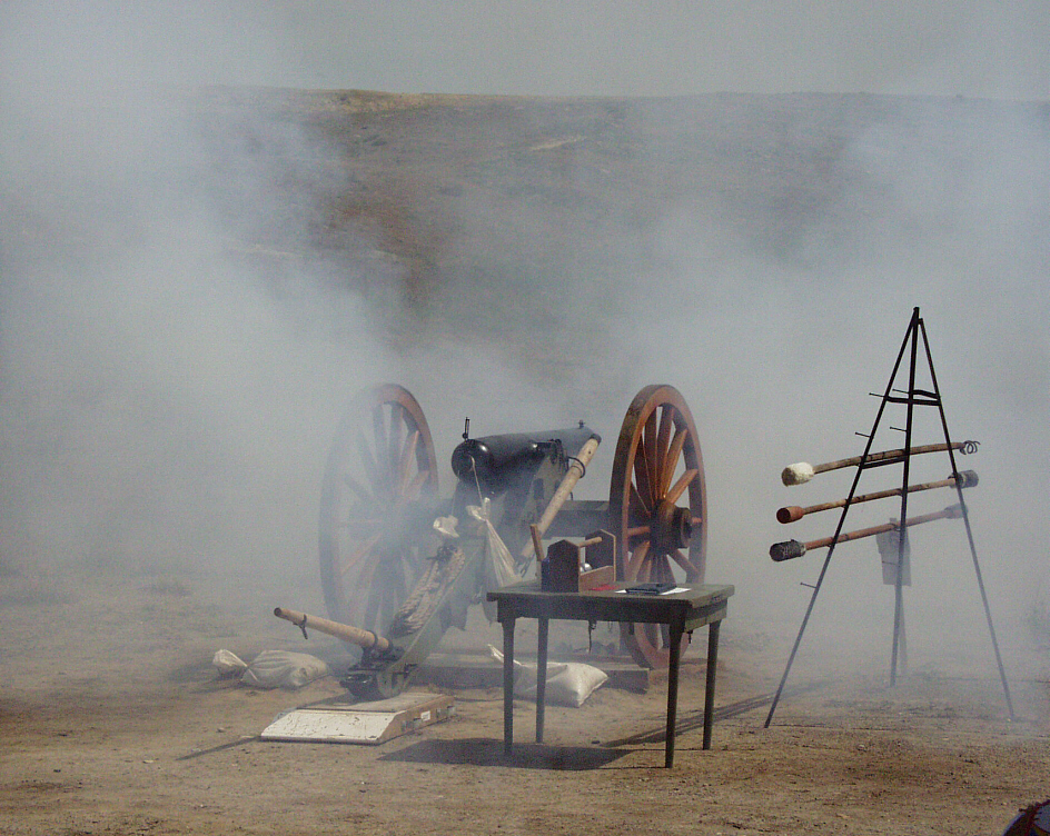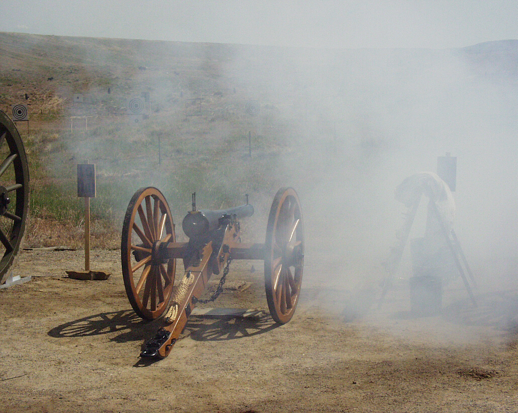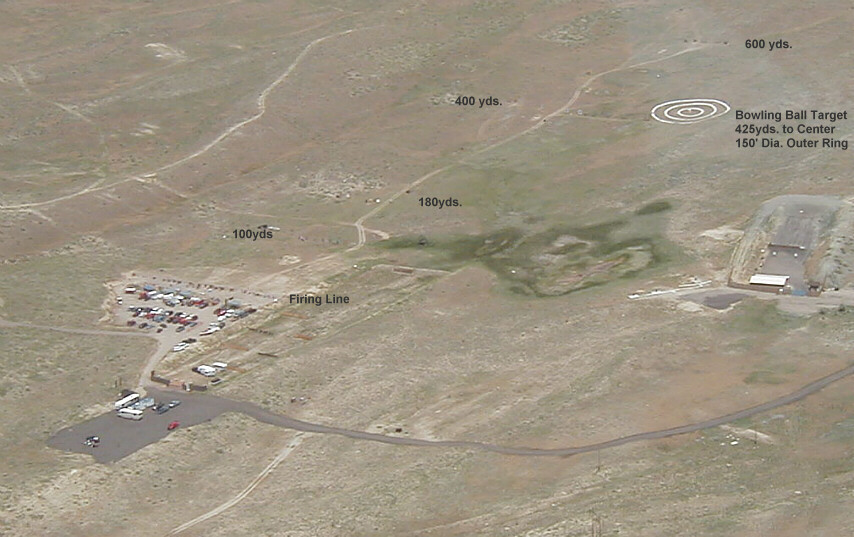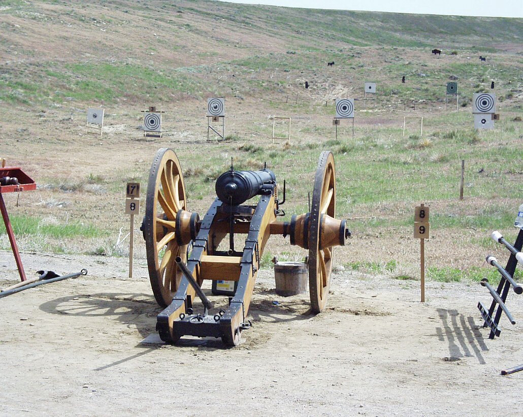 2009 Casper Cannon Shoot The Range Aerial View, Spectator Area, 100yd. Smoothbore Targets, 400 & 600yd. Rifled Targets Opening Ceremony Aerial Burst with Red Smoke and Boy Scout Flag Presentation Battery Fire as played from "Battle Hymn of the Republic" Firing Line Guns of the Shoot Rifled Cannons 40mm Rifled Guns