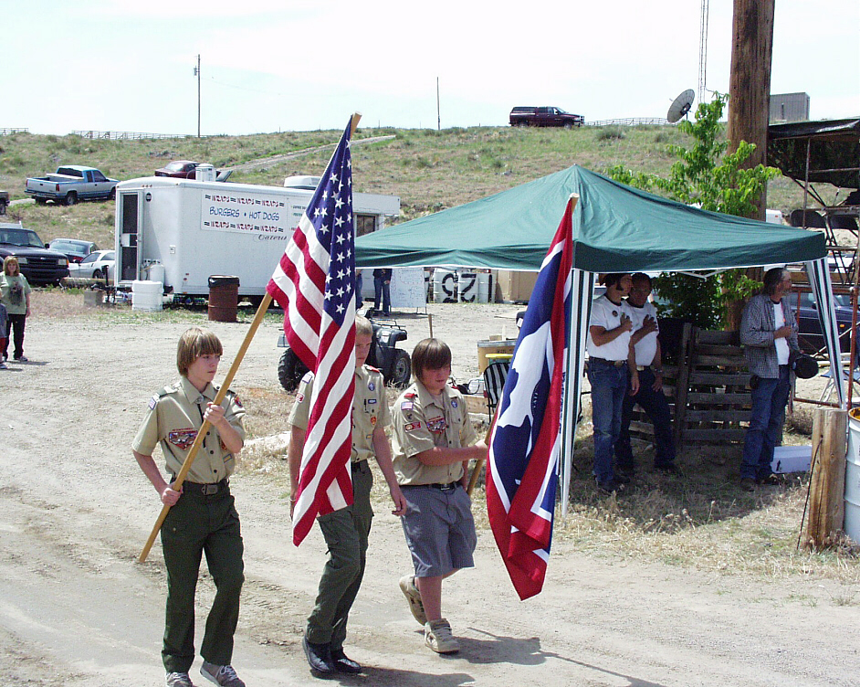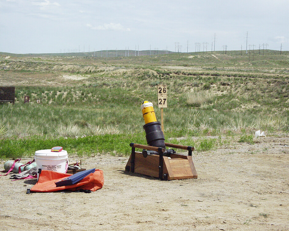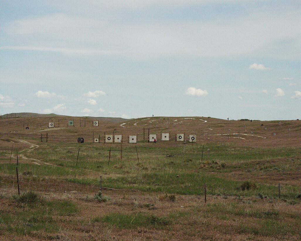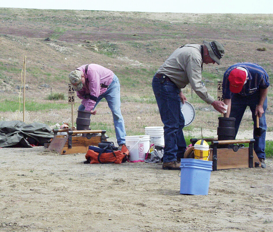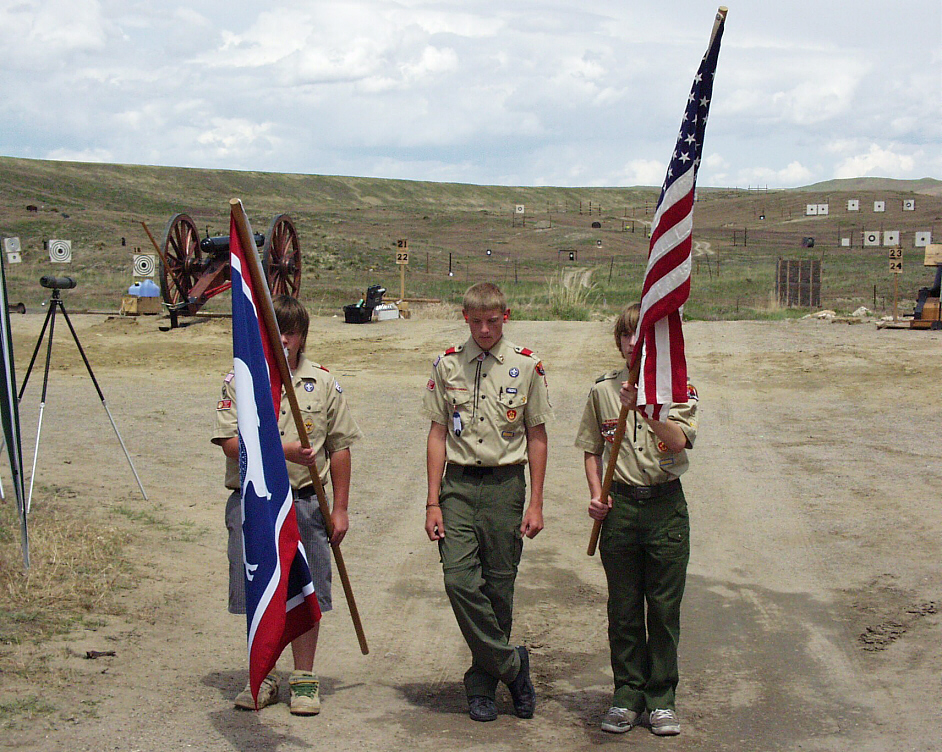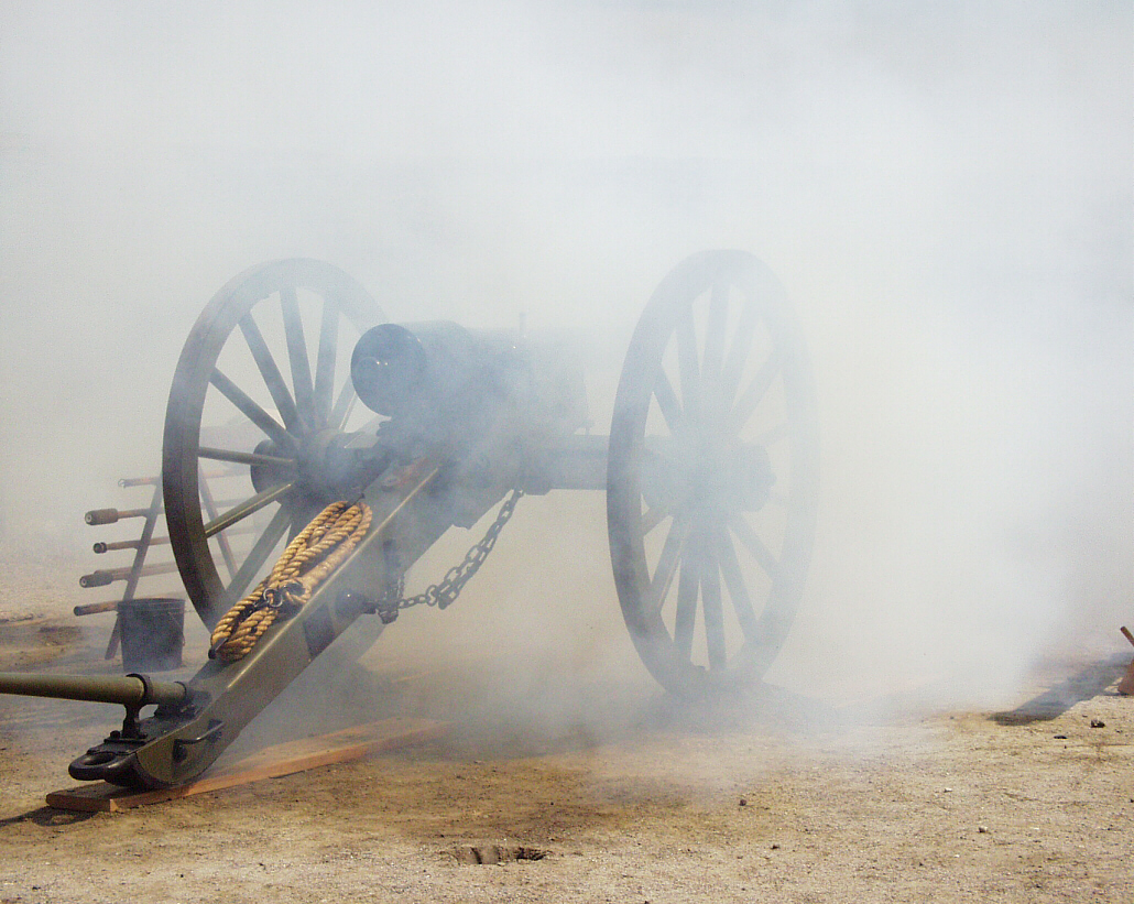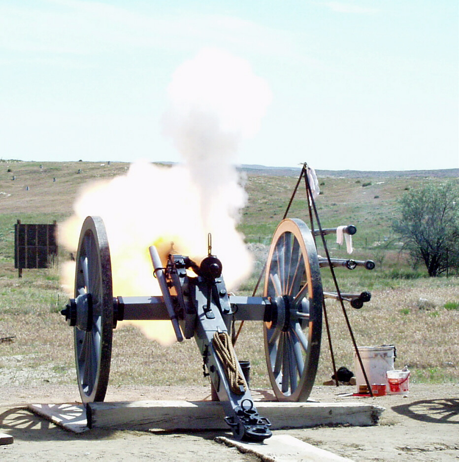 2009 Casper Cannon Shoot The Range Aerial View, Spectator Area, 100yd. Smoothbore Targets, 400 & 600yd. Rifled Targets Opening Ceremony Aerial Burst with Red Smoke and Boy Scout Flag Presentation Battery Fire as played from "Battle Hymn of the Republic" Firing Line Guns of the Shoot Rifled Cannons 40mm Rifled Guns